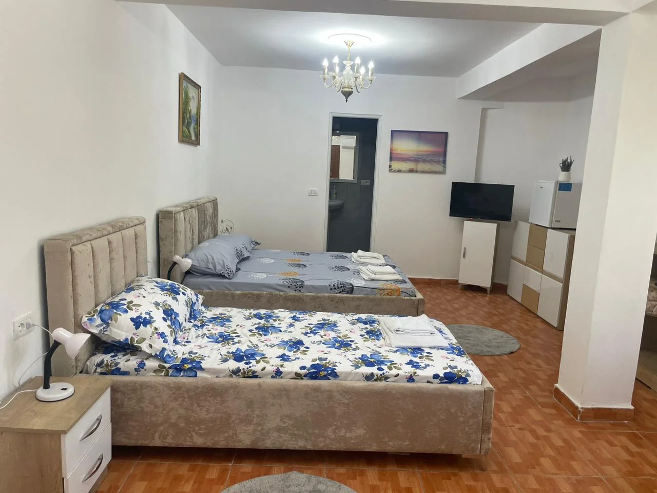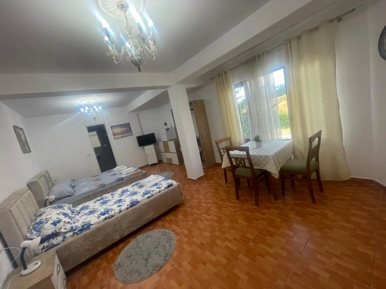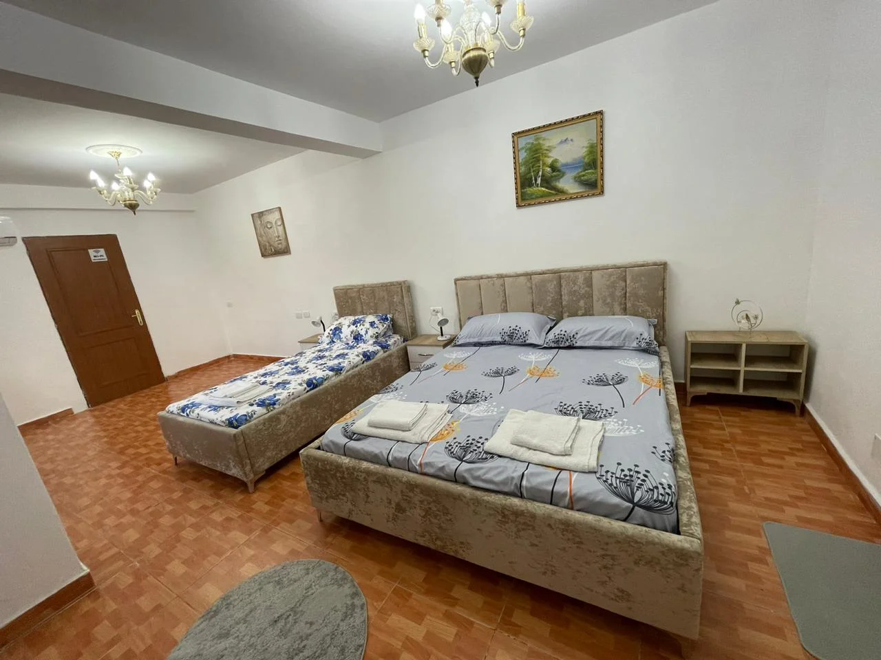 Experience spacious comfort in our Classic Triple Room at Guest House Erzeni, covering 35 m² and ideal for families or small groups. This room features 1 large double bed and 1 single bed, both highly rated for comfort, providing a restful stay near Tirana.